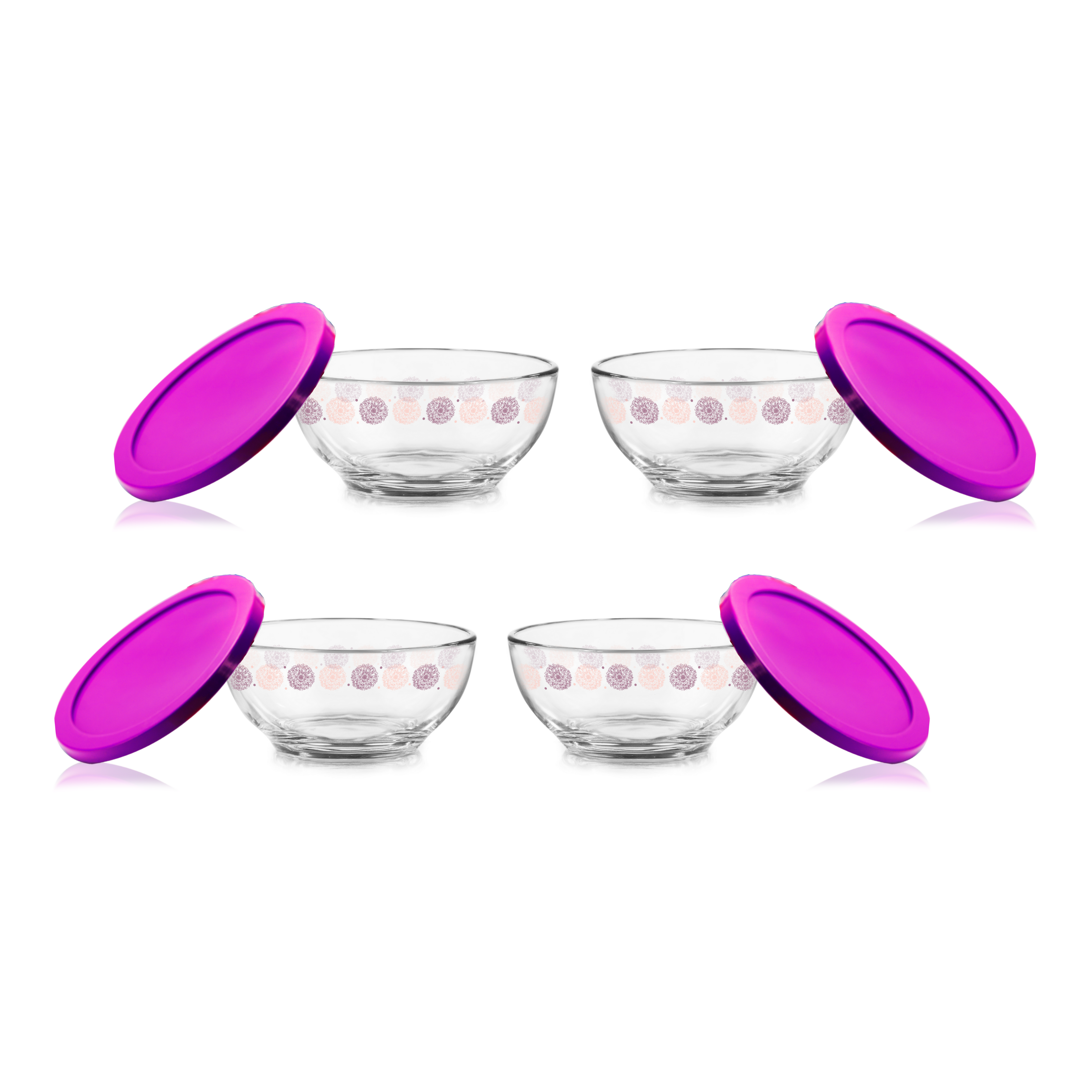 Juego de 4 Tazones Floral 435 ml con tapa