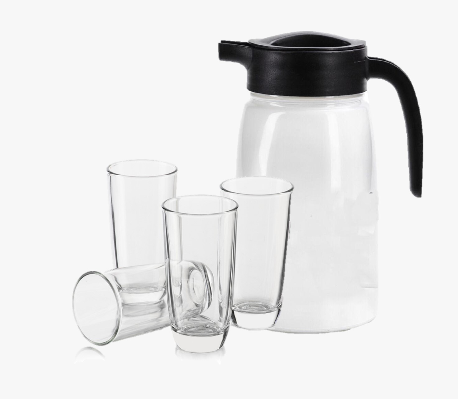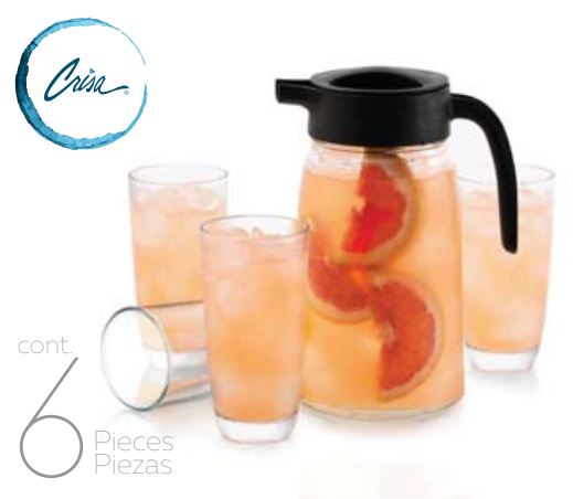 Incluye: 4 Vaso de vidrio 365 ml 1 Jarra de vidrio con tapa 1.72 Lt Marca: Crisa