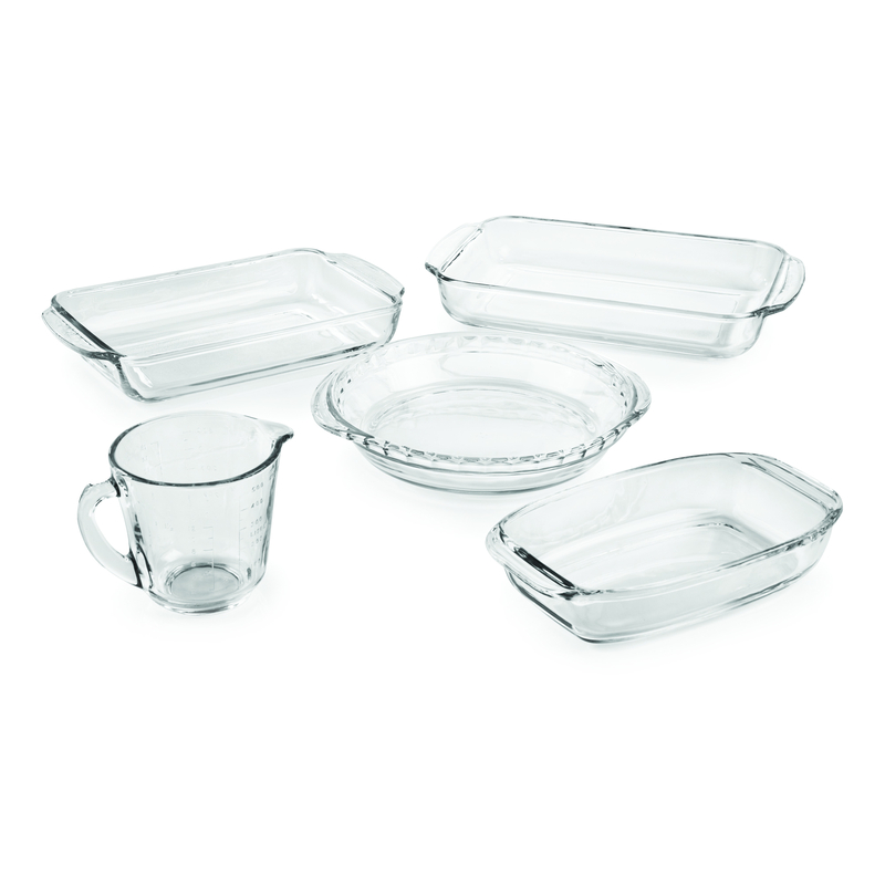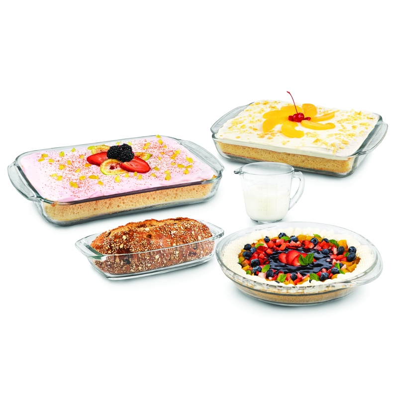 Juego de Hornear (1 Taza de medir 500 ml, 1 Molde para pay 1.6 L, 1 Bandeja rectangular 1.9 L, 1 Bandeja 2.5 L y 1 Molde Pan 1.1 L)