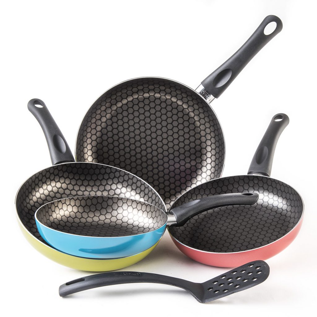 Juego de Sartenes Cinsa 5 piezas Aluminio con Antiadherente 20, 22, 24 y 26 cm. Con Espátula Colores Circus