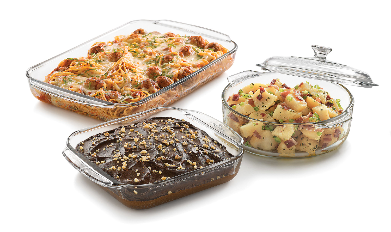 Juego para Hornear ( 1 Cacerola con tapa 1.9 L, 1 Bandeja de 1.7 L y 1 Bandeja 3.2 L)