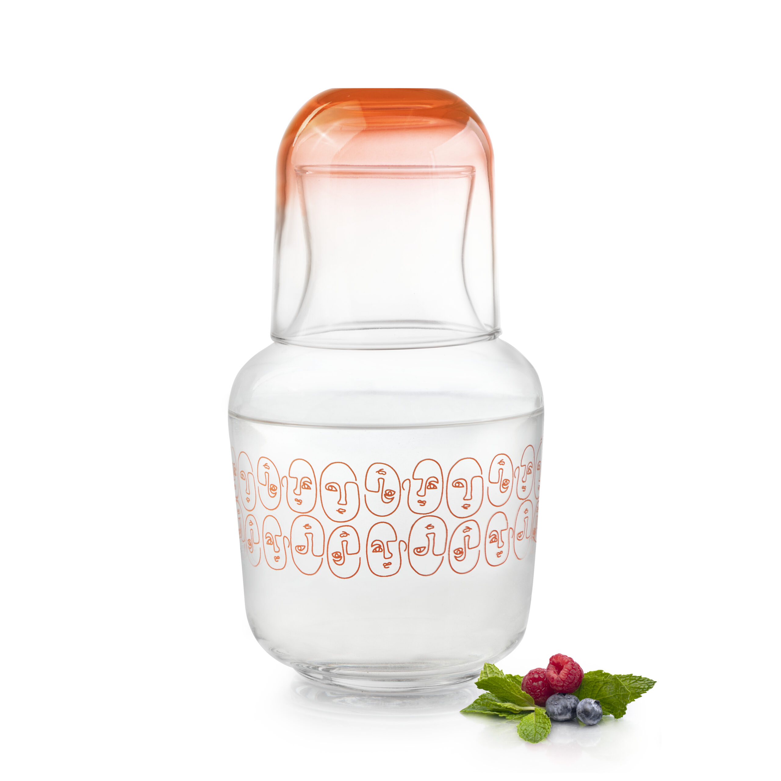El set de agua decorado rostros 2 Pz es un conjunto de garrafa y vaso de vidrio con un diseño divertido y original. La garrafa está decorada con caras que le dan un toque de alegría y diversión.